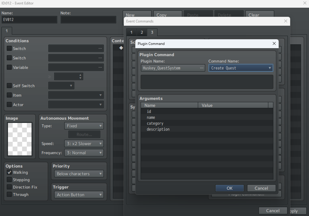 Use Plugin Command โ Create Quest (on event like an npc)
